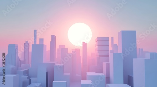 Minimalist city skyline at sunrise.