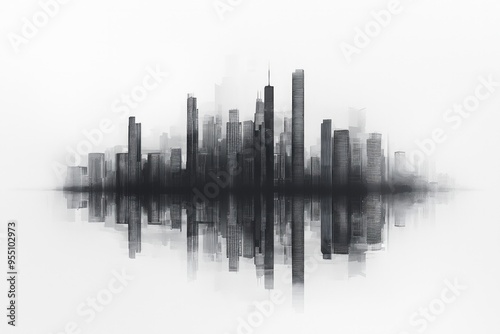Minimalist city skyline with reflection.