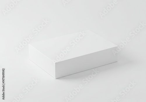 Minimalist composition featuring a simple, rectangular white box on a clean white surface with subtle shadows