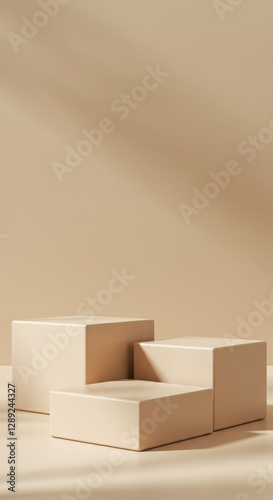 Minimalist composition of three beige cubes on a soft neutral background with gentle shadows creating a serene and elegant modern aesthetic