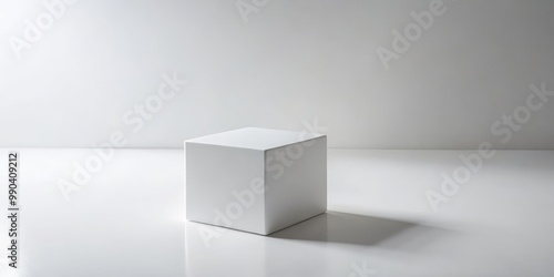 Minimalist Cube on White Background, Monochromatic, Simple, Geometric, Product Display, White Cube, Minimalist Photography