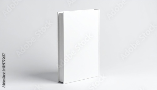 Minimalist depiction of a blank white book standing vertically against a soft background
