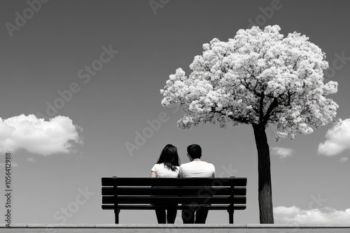 Minimalist depiction of a couple sitting side by side, capturing the peace and joy in their quiet togetherness, symbolizing simplicity and unity