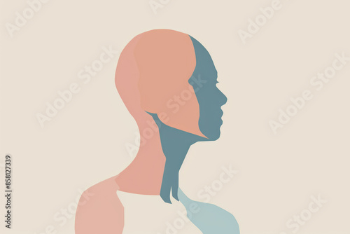 Minimalist depiction of a person with soft, muted colors and simple shapes,