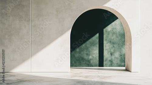Minimalist Design Featuring a Bold Geometric Arc and Textured Wall in a Contemporary Interior Space. Generative AI