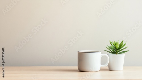 Minimalist Desk Setup: Coffee, Plant, and a Clean Workspace
