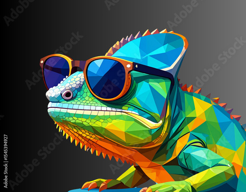 Minimalist Digital Chameleon with Sunglasses on Color Block Background