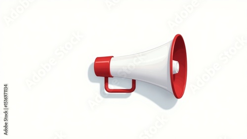 Minimalist digital illustration of a white megaphone with red accents in flat design style