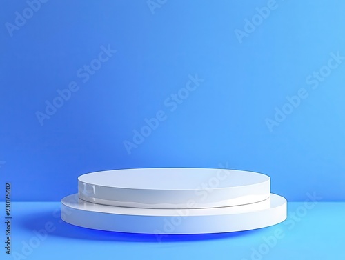 Minimalist display podium with blue background for product showcases, presentations, and creative photography.