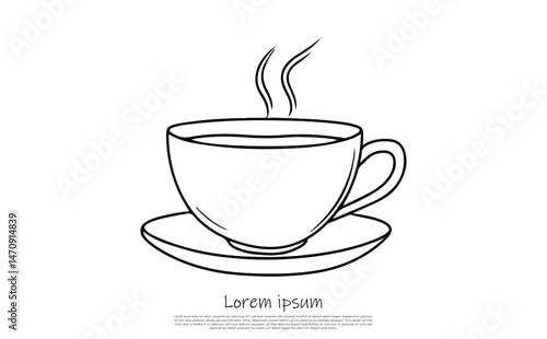 Minimalist Drawing of Steaming Coffee Cup on Saucer with Sample Text over White