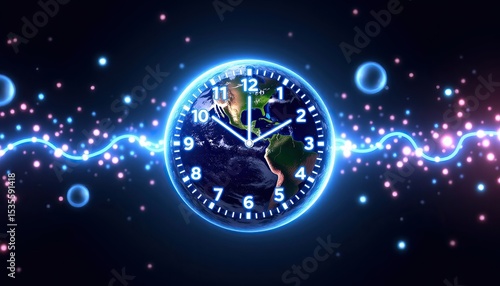 Minimalist Earth Clock with Cosmic Background Design
