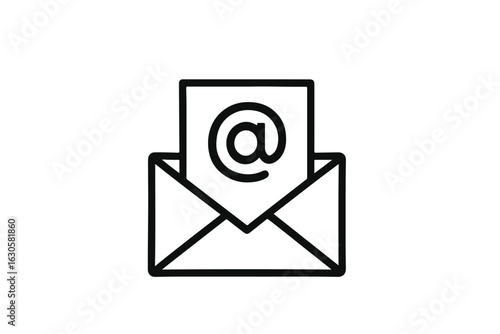 Minimalist Email Icon. Vector symbol of an open envelope with an @ sign for web and app user interface design.