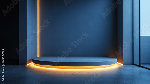 Minimalist floating podium highlighted by gentle ambient light for an elegant presentation