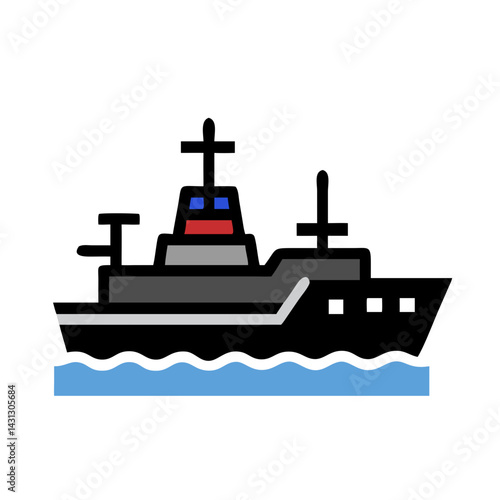 Minimalist Graphic Illustration of a Ship on Water, Dark Background
