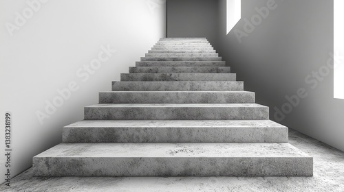 Minimalist gray concrete stairway isolated on clean white background with transparent copy space, symbolizing steps to success concept for business and motivational design applications