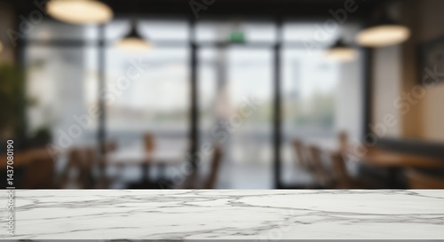 minimalist high-quality stock photo presents clean marble tabletop cafe interior blurred background designed as professional banner-style mockup surface food beverage product presentation
