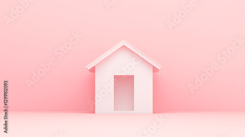 Minimalist home design. Clean, simple architectural model of a house in a monochrome rose color scheme. Modern real estate icon. Soft background and shadows.