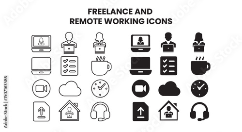 Minimalist Icon Set for Work from Home and Virtual Office Concepts