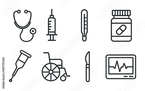 Minimalist icon set: window, image, quote, stars, palette, circle, calendar, heart.