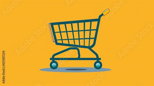 Minimalist illustration of an empty shopping cart on a bright yellow background, symbolizing retail and shopping concepts.