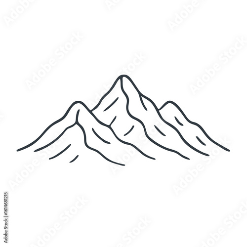 Minimalist illustration of rugged mountain peaks in simple line art style on white background