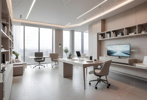 minimalist interior design style futuristic home office sleek furniture state of the art technology