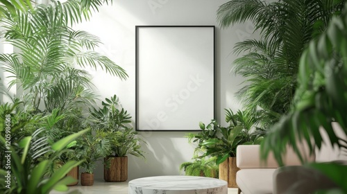 Minimalist Interior Design with Blank Frame and Lush Greenery