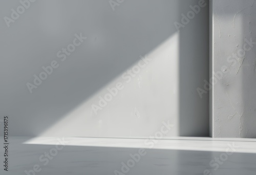 Minimalist interior space with soft natural light casting geometric shadows on smooth surfaces