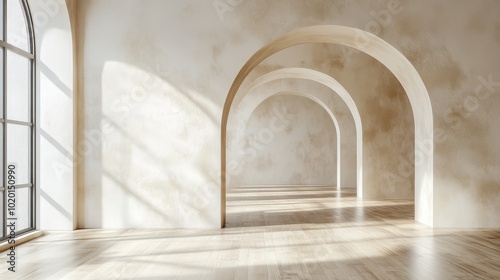Minimalist Interior with Multiple Arched Openings and Sunlight