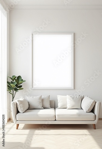 Minimalist italian Living Room Interior with Blank white Frame Mockup