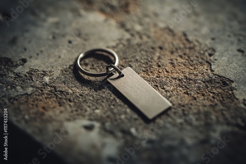 Minimalist keychain design featuring a single metal ring rustic setting product photography industrial environment close-up view modern concept for stylish key accessories