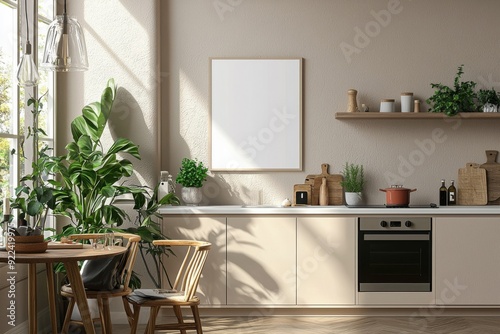 Minimalist Kitchen interior with Poster Mockup created with Generative AI