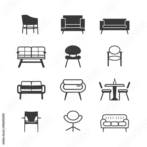 minimalist line art icon furniture collection set logo symbol