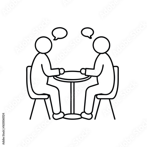 Minimalist Line Art of Two People Having a Conversation at Round Table