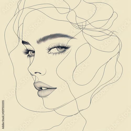 Minimalist Line Art Portrait of a Woman's Face in Soft Shadows and Elegant Curves