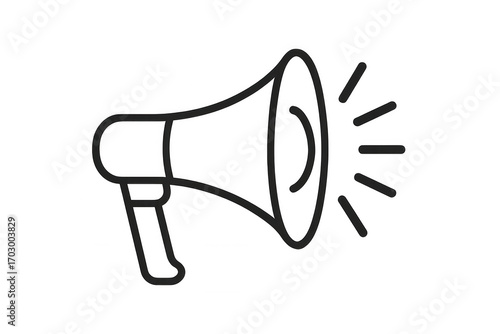 Minimalist megaphone line drawing highlighting communication concept, white transparent backdrop signaling marketing message