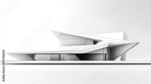 Minimalist modern house architecture, featuring simple forms and sharp lines, rendered in 3D with a white background for emphasis