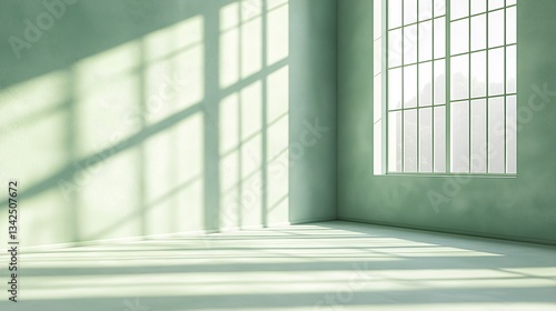 Minimalist Modern Interior Design: Bright and Inviting Open Space with Soft Light Shadows and Green Decor