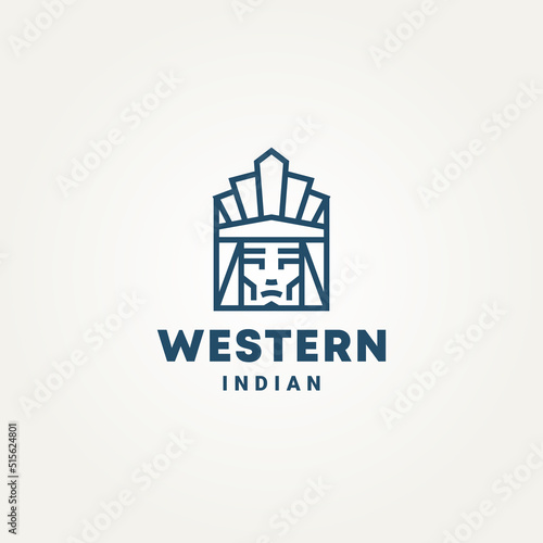 minimalist native american indian chief head line art icon logo template vector illustration design. simple western apache indian chief logo concept