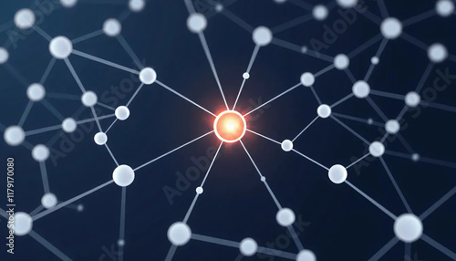 Minimalist Network Node Visualization with Orange Glow on Dark Blue Background