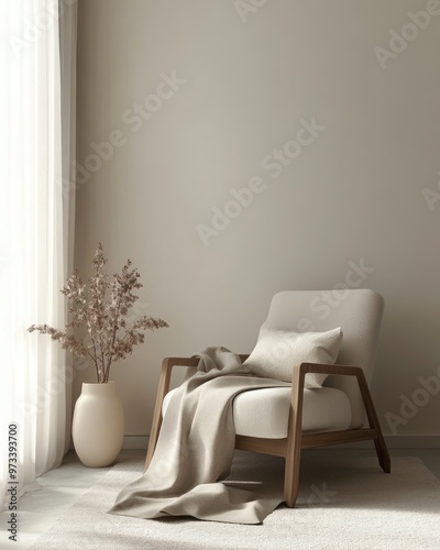 Minimalist Nordic Living Room with Simple Decor and Scandinavian Lifestyle Concept, 3D Render