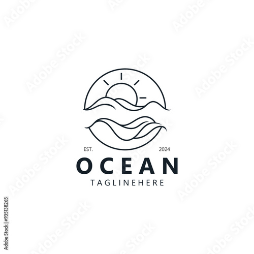 Minimalist ocean logo design with a round shape, ocean beach, sea water, simple, unique