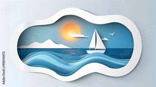 Minimalist of Sailboat on the Sea with Paper Cut Design