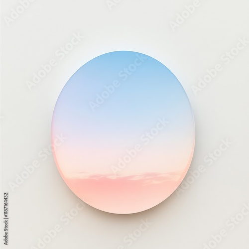 Minimalist oval shape with a gradient transition from pale pink to sky blue, softly centered on a clean white backdrop