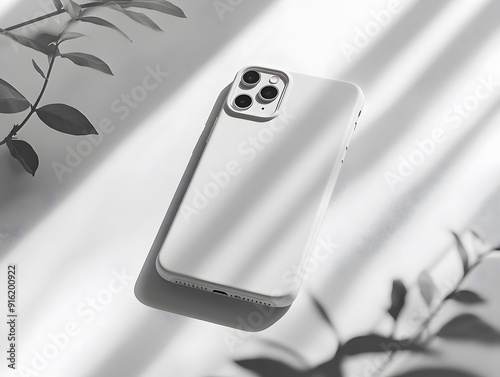 Minimalist phone case mockup placed on a plain background with subtle highlights