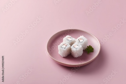 minimalist plate with sushi rolls shaped like animals cats pandas and rabbits