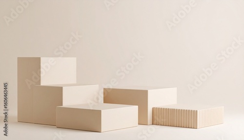 Minimalist podium composition with stacked circular platforms, beige tones, vertical ridged background