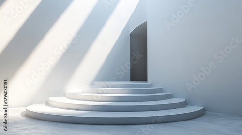 Minimalist podium in a clean, white space with soft shadows
