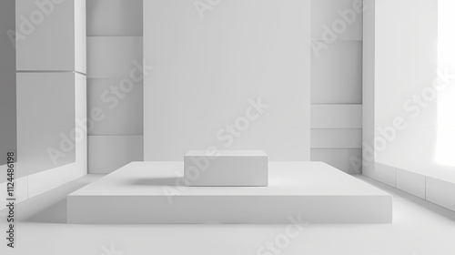 Minimalist Product Display: A clean and modern aesthetic for showcasing products. Simple yet elegant, this white, minimalist studio space offers a blank canvas for your product photography.