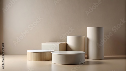 Minimalist product display podiums in neutral tones, minimalist, product, display, podiums, neutral tones, modern, contemporary